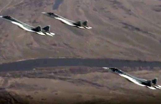 Потом пилот переводит камеру на левую сторону, где виден еще один самолет — это, как утверждается, стратегический ракетоносец Ту-95МС.