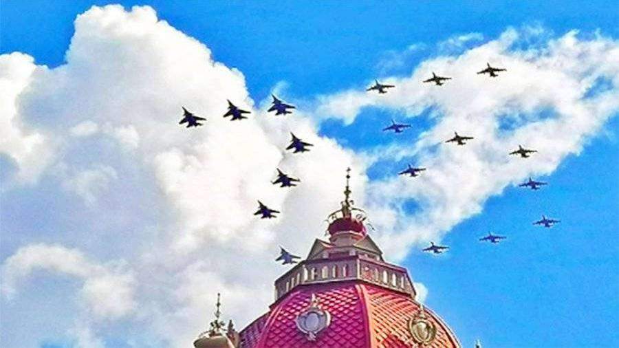 Опубликованы кадры пролета изобразивших цифру 75 самолетов над Ростовом-на-Дону