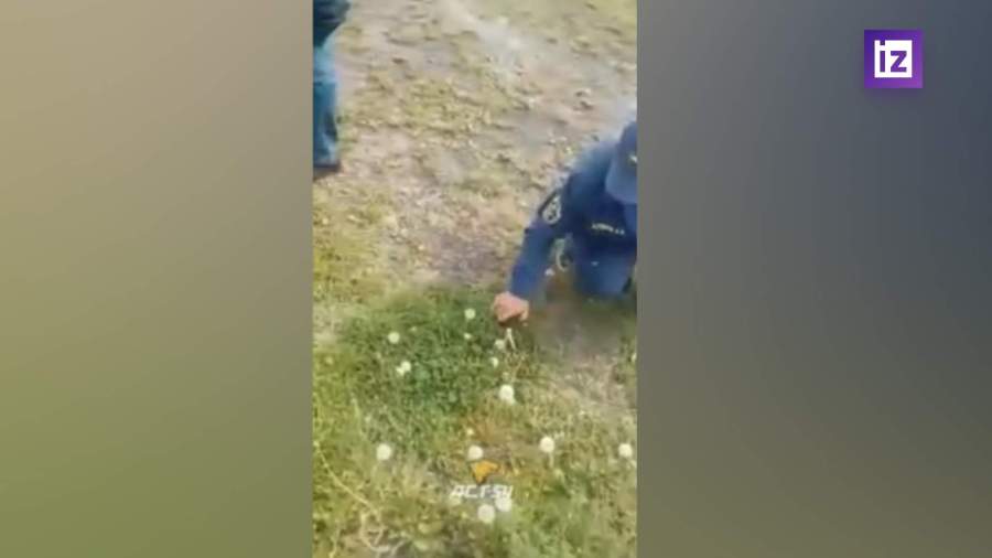 Сотрудники МЧС косят траву ножницами