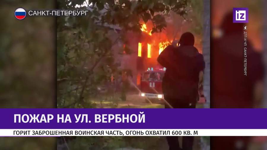 Пожар произошел в Приморском районе Санкт-Петербурга на улице Вербной. Загорелась заброшенная воинская часть, огонь охватил 600 кв. м.