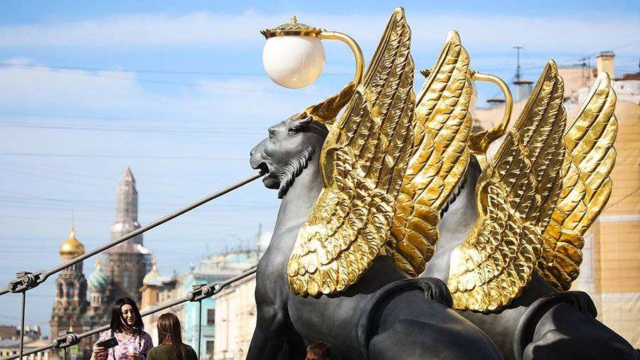 В Петербурге скульптуры грифонов отмыли от краски
