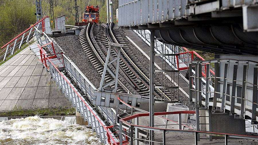 Укладку железнодорожного полотна в обход рухнувшей переправы завершили ночью, на данный момент заканчиваются настроечные работы.