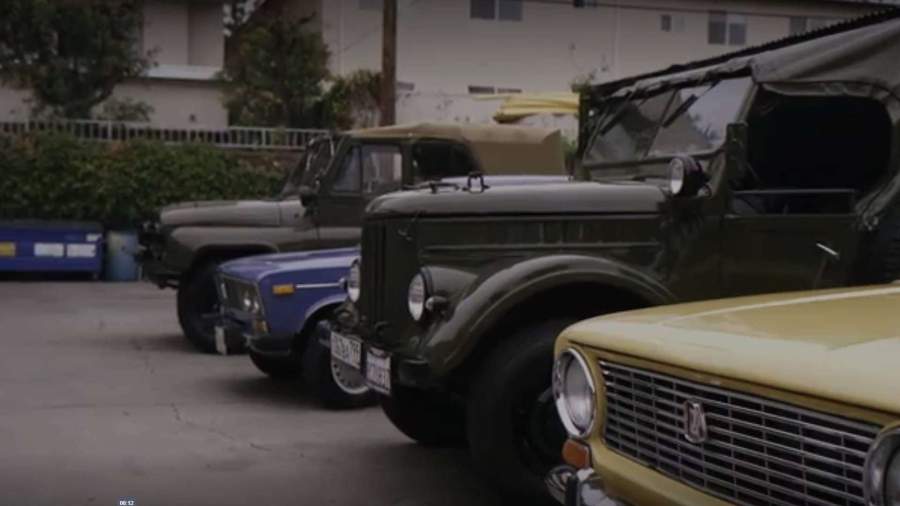 Колонна, включающая в себя десять советских автомобилей, прошла по бульвару Голливуда и завершила свое шествие в Пламмер-парке в Беверли-Хиллз.