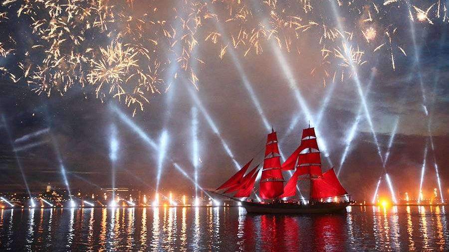 «Алые паруса» — единственное в мире грандиозное представление, посвященное выпускникам школ. Первый праздник состоялся 27 июня 1968 года. Праздник в Санкт-Петербурге проводили до 1979 года, а затем традицию возродили в 2005 году с помощью банка «Россия», Пятого канала, при поддержке властей города.