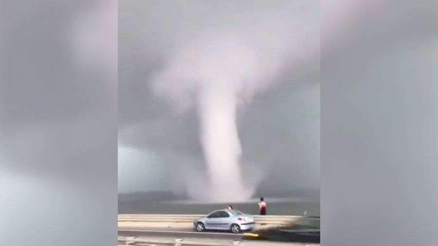 Пользователи соцсети Twitter поделились видеозаписями, на которых запечатлен гигантский торнадо.