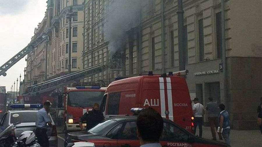 Жилой дом XIX века загорелся на Тверской улице в Москве