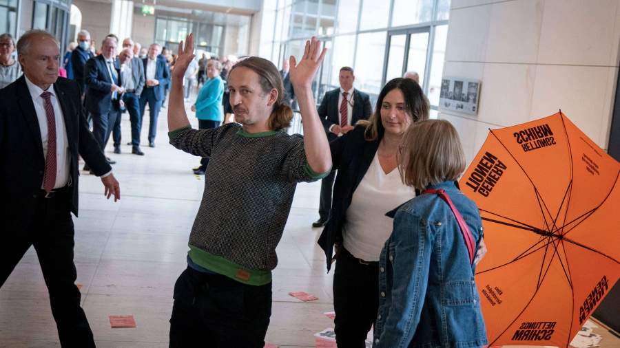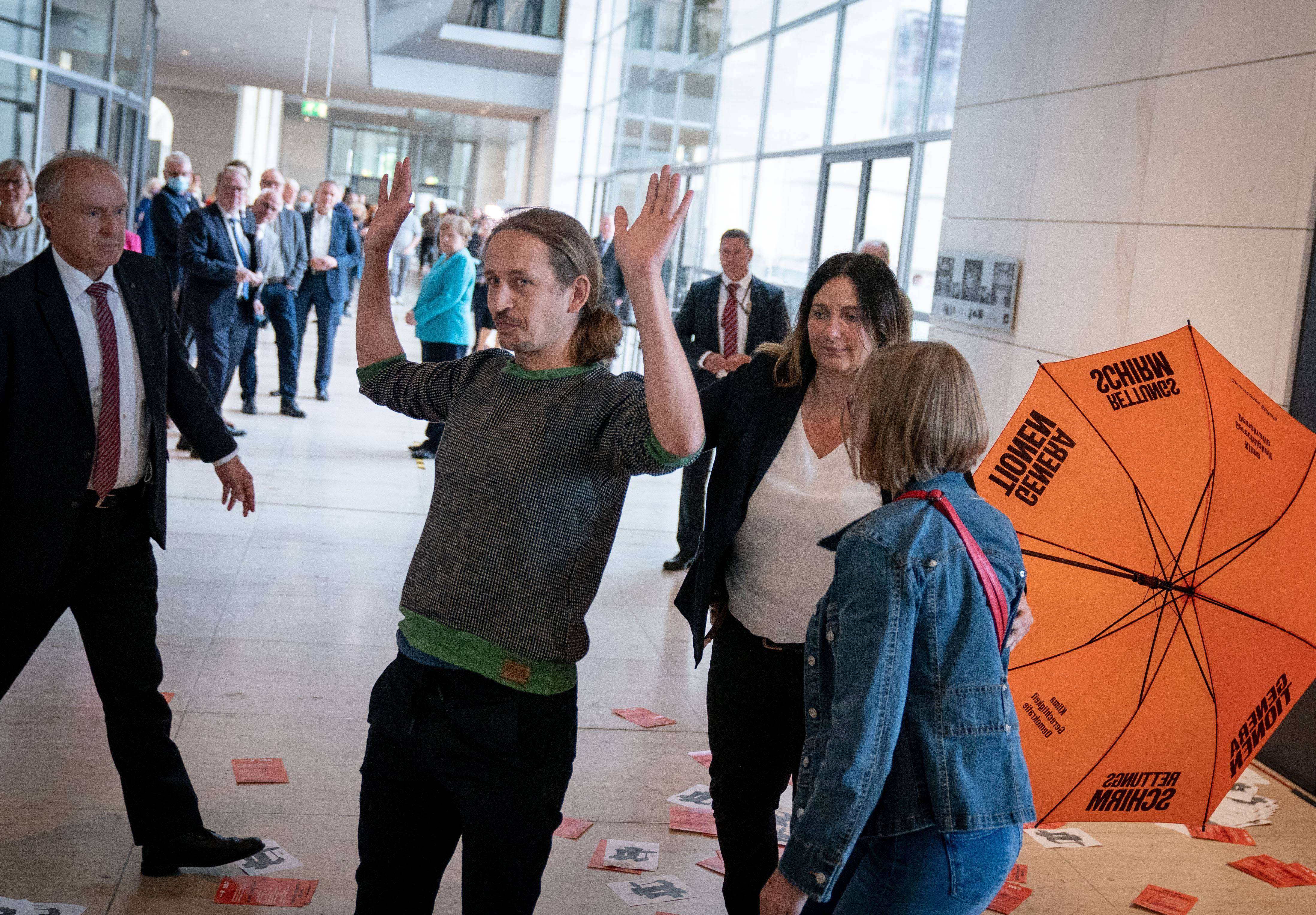 Экоактивисты устроили акцию протеста в бундестаге рядом с Меркель