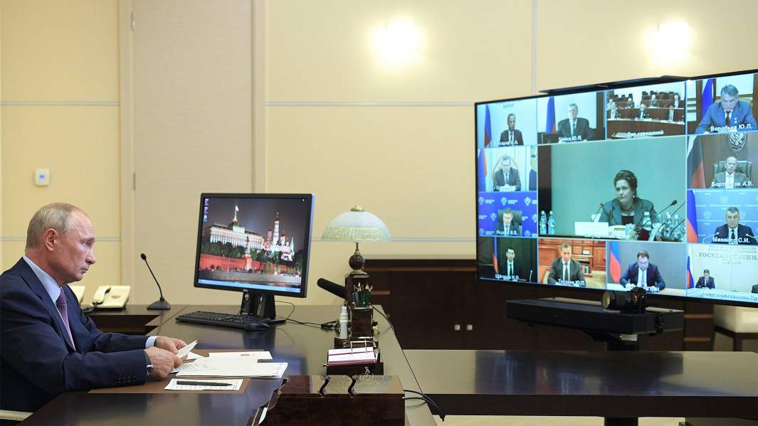 Президент РФ Владимир Путин в режиме видеоконференции проводит заседание Российского организационного комитета «Победа», 2 июля 2020 года
