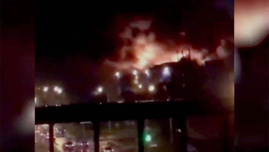 На кадрах видно здание, охваченное огнем, и исходящие от него клубы дыма.