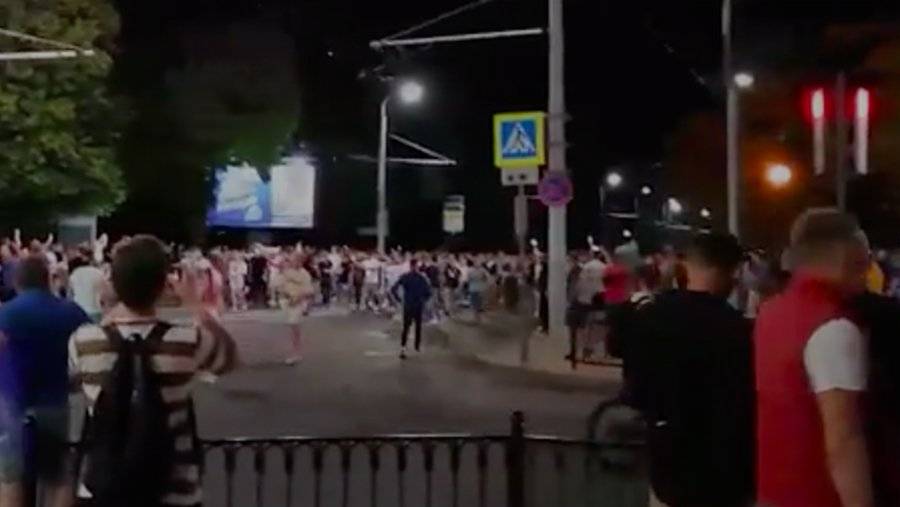 Сообщалось о столкновении протестующих с полицией, известно о ранении бойца внутренних войск Белоруссии. Поступают сообщения о том, что демонстранты забрасывают милицию горящими файерами.