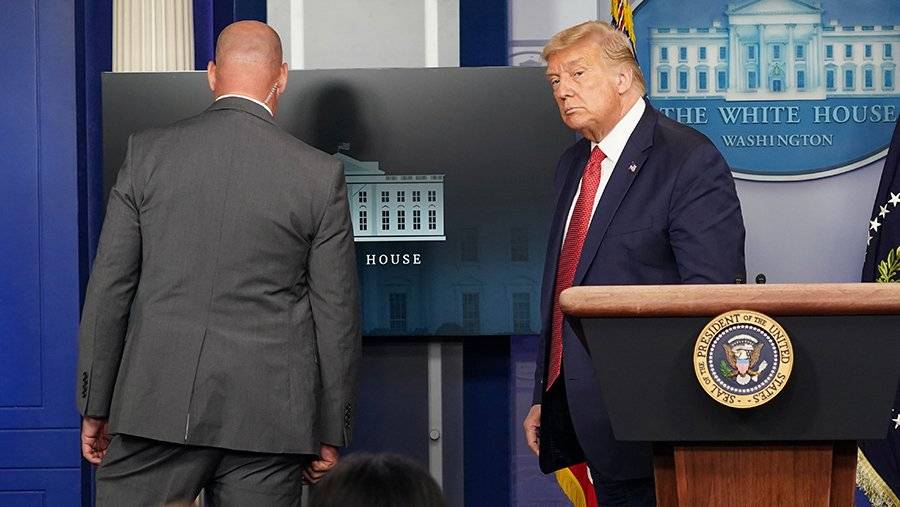 Охрана увела президента США Дональда Трампа с пресс-конференции, трансляцию которой вел сайт Белого дома.