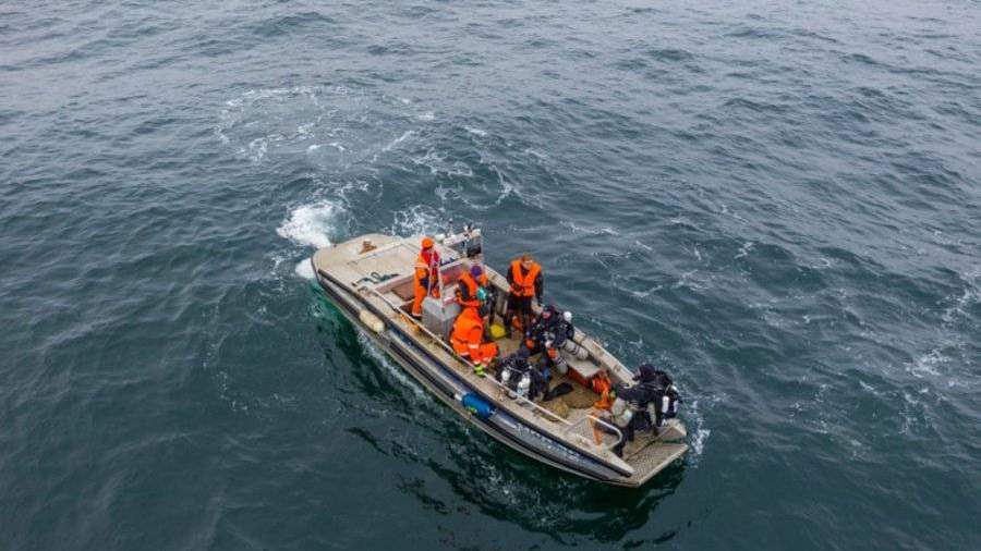 Ученые провели водолазные спуски для идентификации и обследования судна, затем были отданы почести погибшему пароходу. После высадки экспедиционного отряда буксир-спасатель направился к месту постоянного базирования.