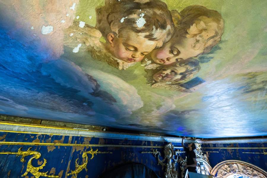 В музее-заповеднике «Царское Село» после четырехмесячного перерыва на карантин снова стали доступны для посетителей церковь Воскресения Христова и личные покои великого князя Павла Петровича в Екатерининском дворце. В последнее десятилетие специалисты музея ежегодно открывают новые объекты после реставрации. Сейчас они занимаются восстановлением Зубовского флигеля, в комнатах которого любила отдыхать Екатерина Великая. Как проходят реставрационные работы — в фотогалерее «Известий»