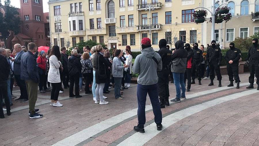 ОМОН заблокировал протестующих на площади Независимости в Минске. Об этом сообщает 27 августа корреспондент «Известий».