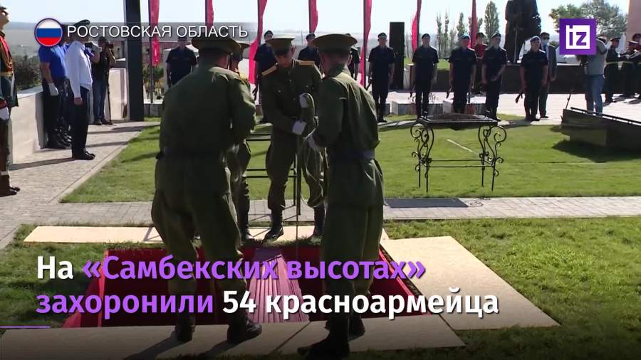 В Ростовской области на территории Самбекских высот захоронили останки 54 бойцов Великой Отечественной войны, сообщили в правительстве региона. Удалось установить имена четырех из них. Подобные церемонии здесь проводят с 2017 года.
