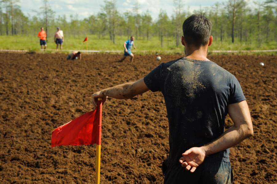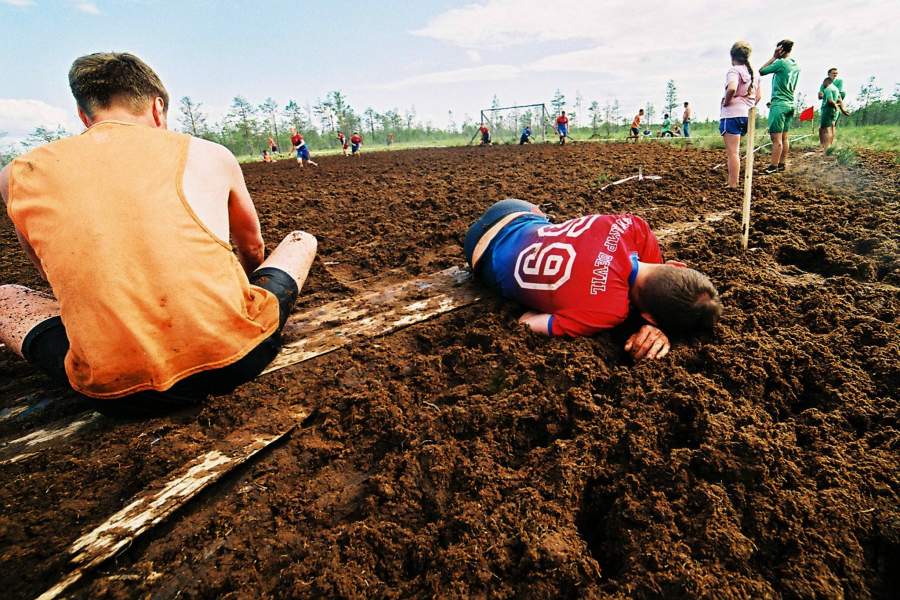 Футбол — традиционно один из самых популярных среди россиян видов спорта. Но если большинство любителей «попинать мячик» делают это кто на настоящем поле, кто в импровизированной дворовой «коробочке», то эти суровые парни соревнуются в природных условиях — на болоте. Подробности — в фотогалерее «Известий»