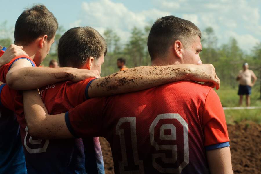 Победный прыжок в склизкую грязь для болотных футболистов не досадное недоразумение, а часть ритуала