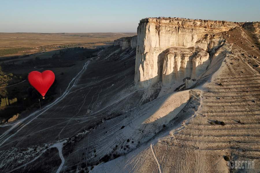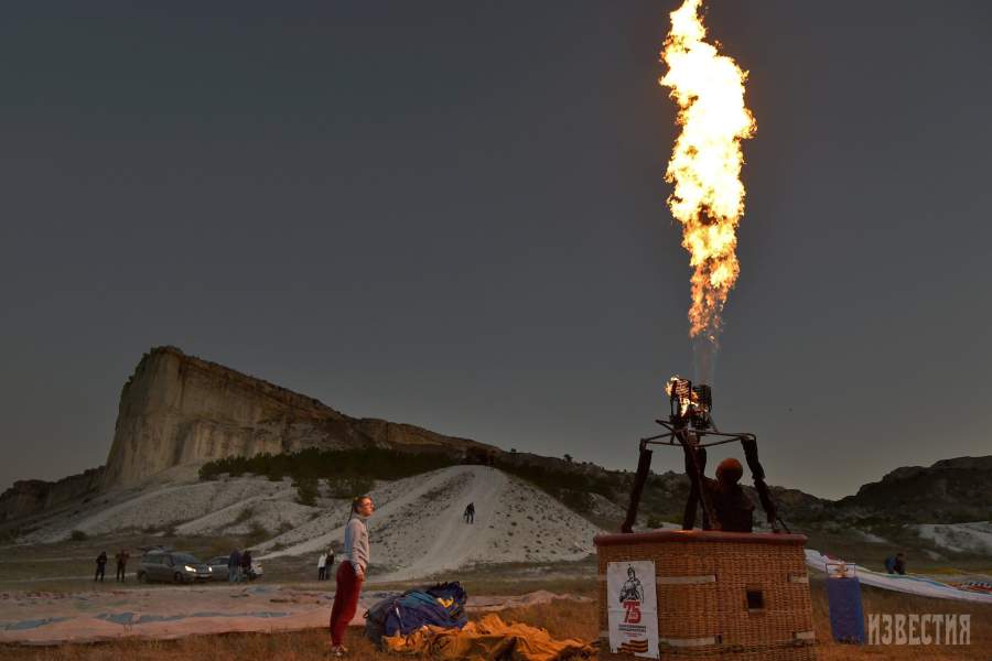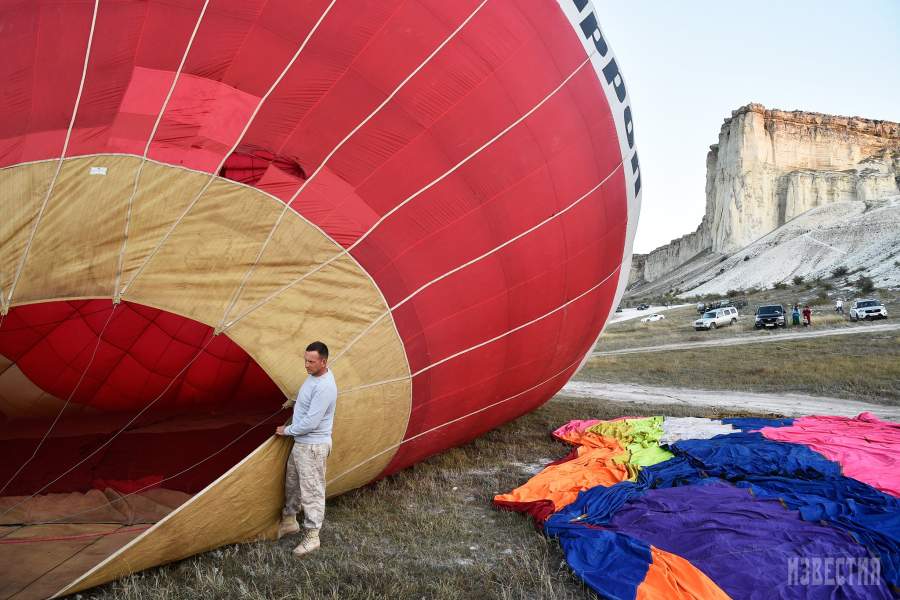 Высота обрыва скалы Ак-Кая (Белая скала) составляет порядка 100 м. Аэростаты довольно быстро поднимаются вдоль отвесного горного массива, после чего «замирают» на высоте около 130–150 м