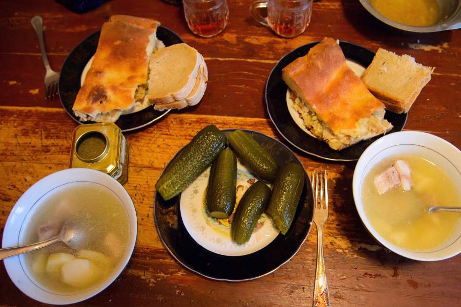 Сибирский сытный обед ожидает мастера после работы
