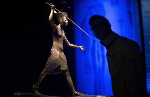 Бронзовая статуэтка бога Нефертума, сына Птаха и покровителя растительности, изготовлена из бронзы и украшена драгоценными камнями — бирюзой, лазуритом и красным агатом. На ее основании выгравировано имя владельца — Бади Амун