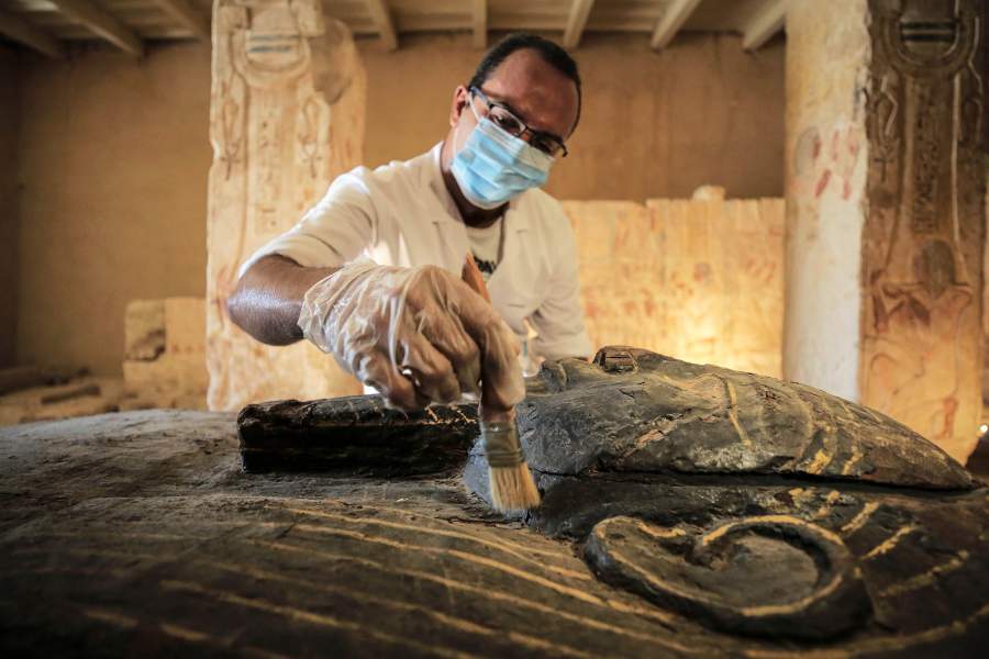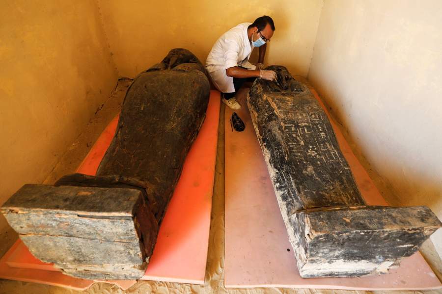 В Египте недалеко от Каира на днях было обнаружено почти шесть десятков саркофагов, возраст которых превышает 2,6 тыс. лет. По данным Министерства по делам древностей, все гробы находятся в отличном состоянии, материалы, из которых они изготовлены, сохранили свой естественный цвет. Как проходили раскопки — в фотогалерее «Известий»