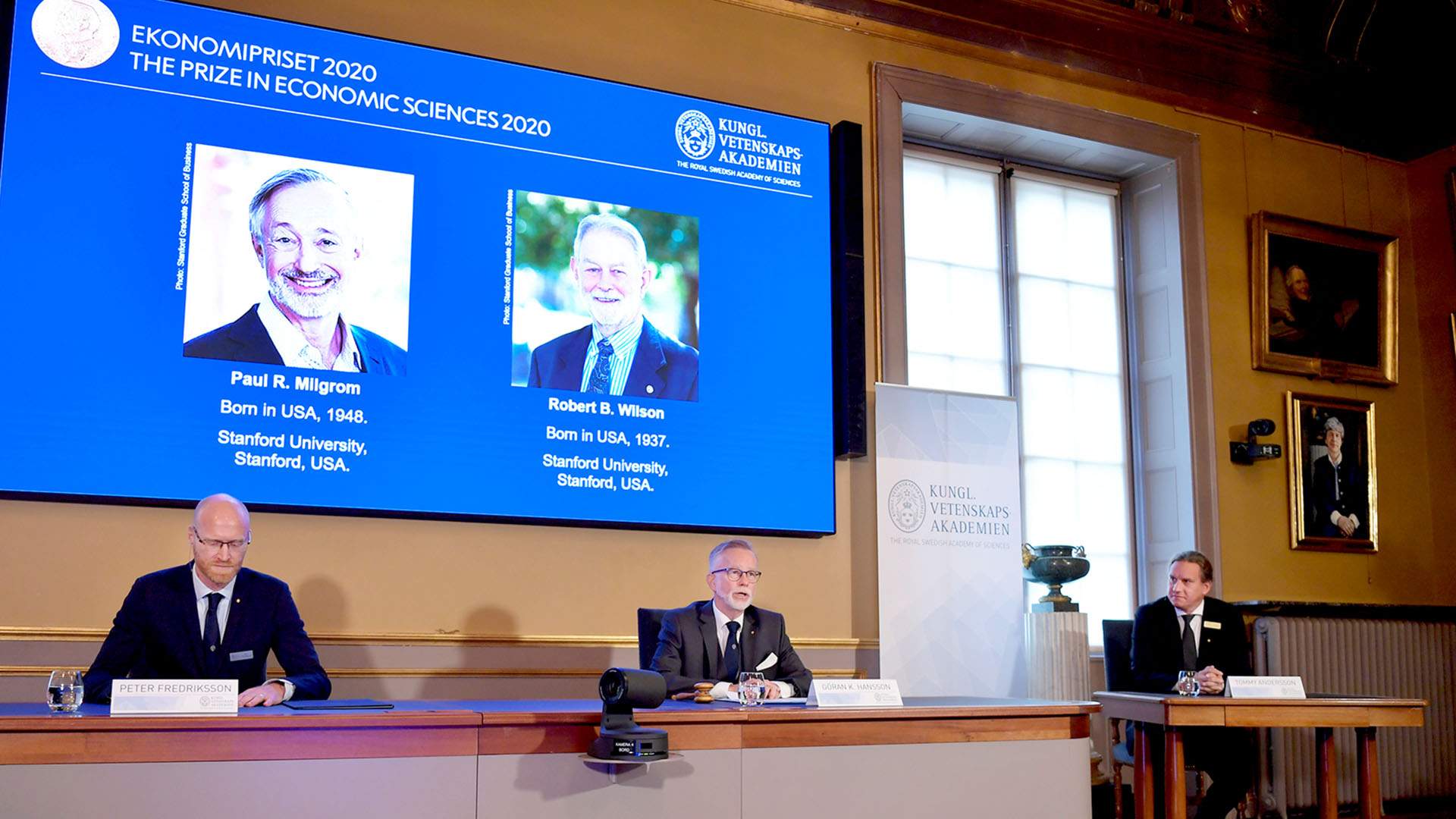Лауреатами Нобелевской премии по экономике за 2020 год стали стэнфордские ученые Пол Милгром и Роберт Уилсон. Об этом объявил в Стокгольме Нобелевский комитет по экономике при академии наук. Награды их удостоили за «новые результаты в теории аукционов и создание новых форматов аукционов».
