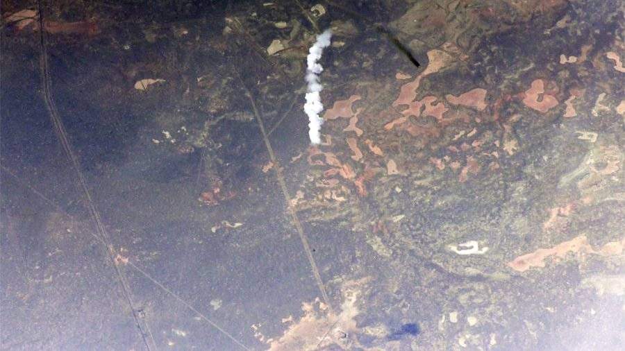Космонавт разместил фотографии, на которых запечатлен взлет ракеты с Земли.