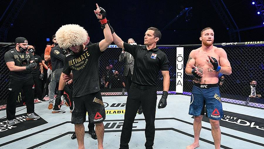 24 октября телеканал РЕН ТВ провел эксклюзивную трансляцию главного боя турнира UFC 254 между Хабибом Нурмагомедовым и Джастином Гэтжи. Боец смешанного стиля (MMA) Хабиб Нурмагомедов победил американца Джастина Гэтжи, сохранив титул чемпиона UFC в легком весе, и объявил о завершении карьеры.