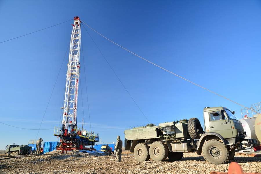 Выкачивание опасных химических веществ из скважин, находящихся за территорией предприятия, еще продолжается. Военнослужащие обеспечивают химическую безопасность работ