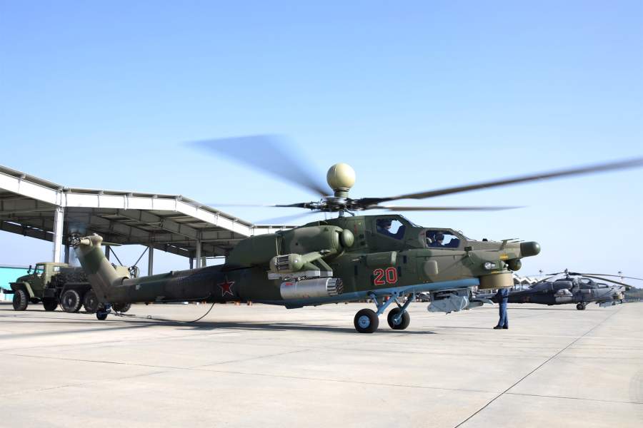 Подготовка учебно-боевого вертолета Ми-28УБ к вылету