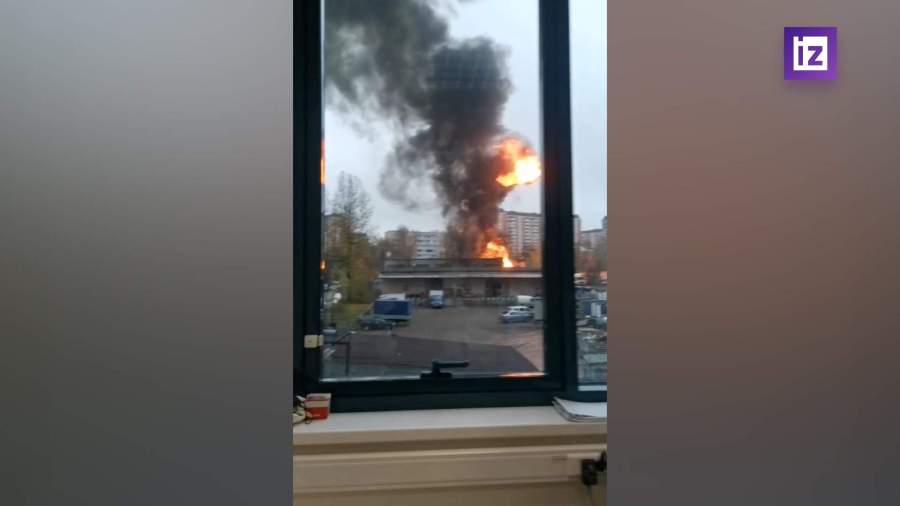 Момент взрыва баллонов на горящей заправке в Москве попал на видео