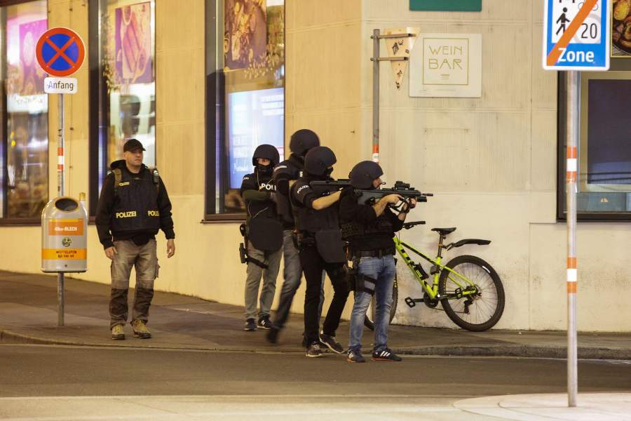 Специальные подразделения и правоохранительные органы Австрии ведут крупную спецоперацию по поиску лиц, устроивших стрельбу. Усиленные наряды полиции со служебными собаками и тяжелым вооружением патрулируют центральные улицы города