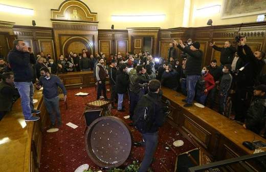 Как сообщают СМИ, протестующие ворвались в здание правительства. По некоторым данным, они избили спикера парламента Армении Арарата Мирзояна.