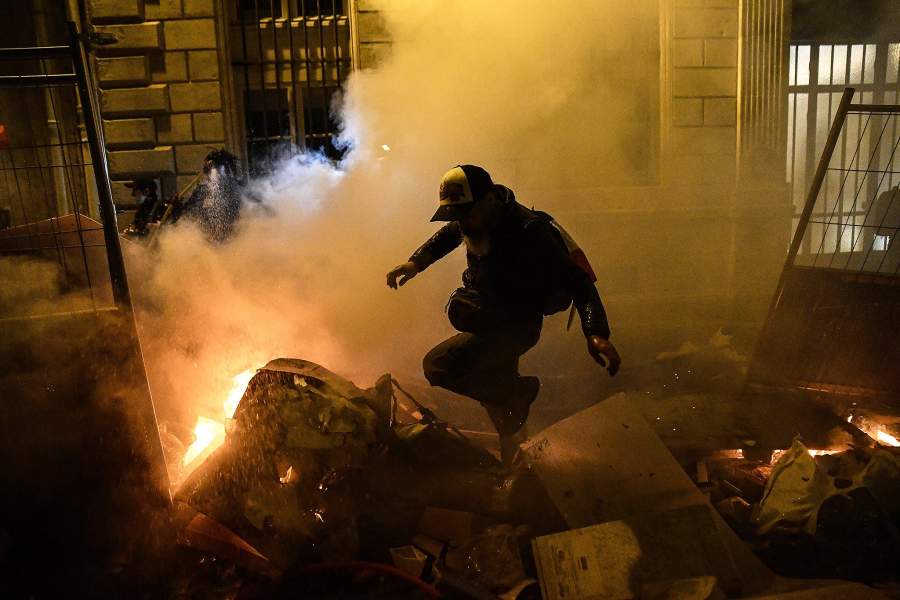 Впрочем, и сами протестующие не стесняли себя в средствах выражения протеста, поджигая мусорные баки и круша всё на своем пути
