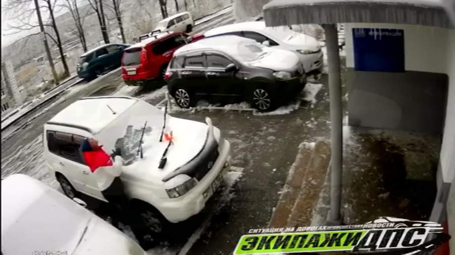 Упала плита на машину