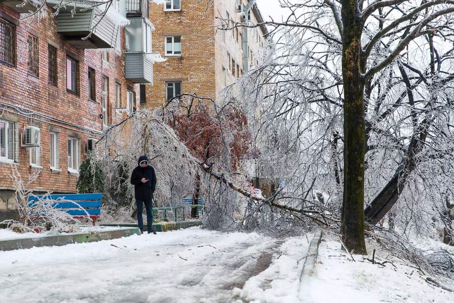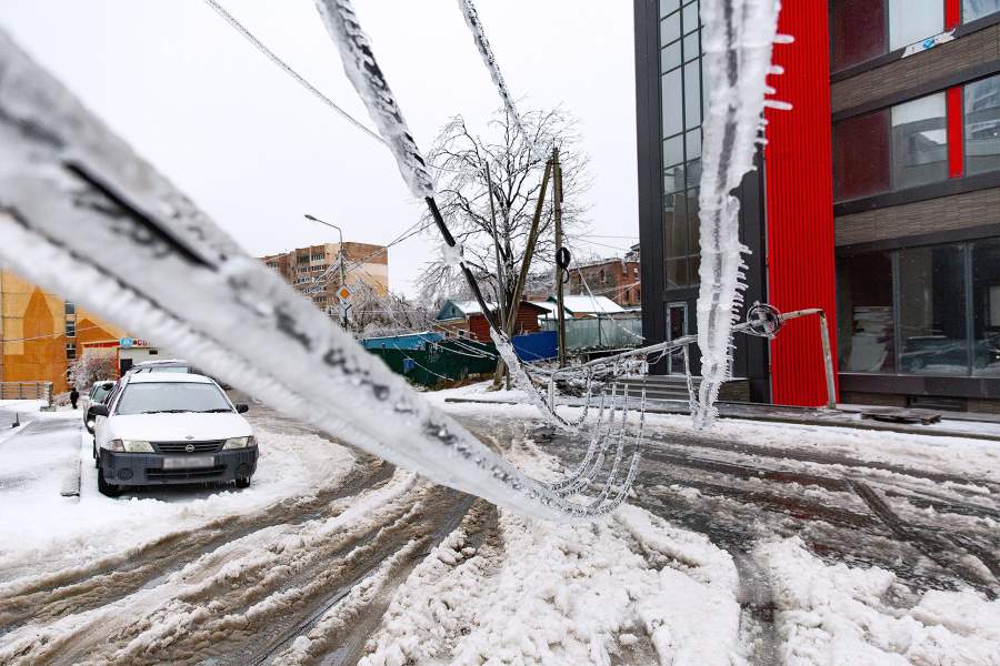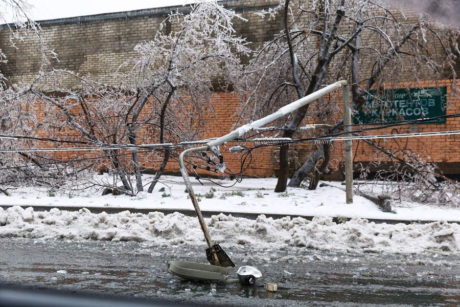 Обледенение привело к обрыву проводов во многих районах города