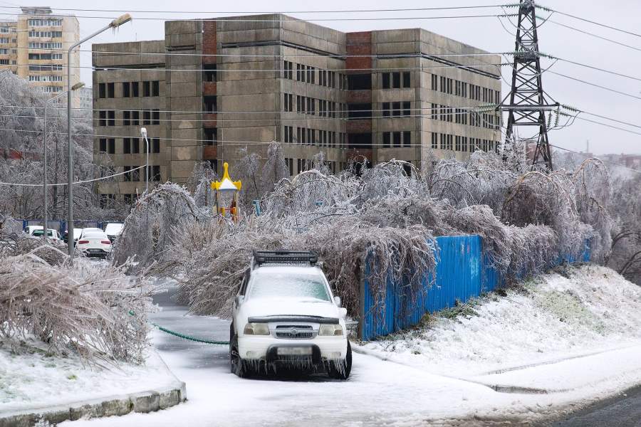 Обрушившийся на Приморье ледяной дождь привел к катастрофическим последствиям во Владивостоке и других населенных пунктах региона. Подробности — в фотогалерее «Известий»
