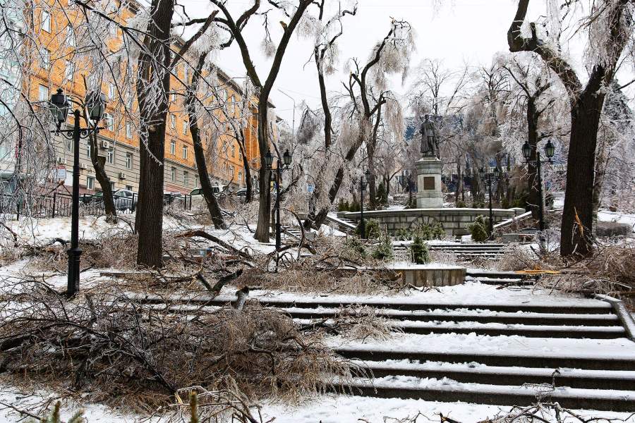 Деревья в городских скверах и парках не вынесли порывов ветра и тяжести ледяного покрова