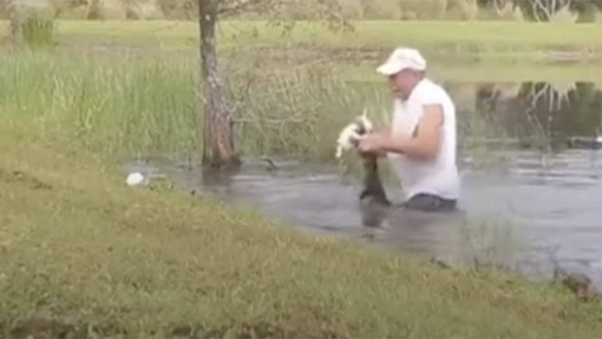 Американец спас свою собаку из пасти аллигатора