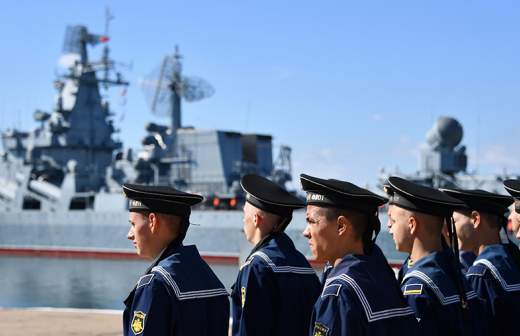 Заместитель командующего Черноморским флотом контр-адмирал Сергей Липилин на церемонии подъема военно-морского флага