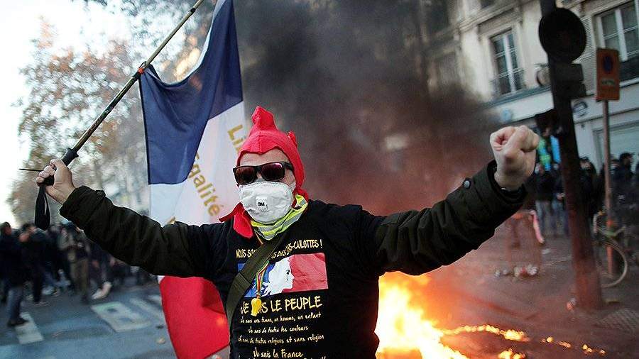 В Париже полиция применила слезоточивый газ и водометы для разгона демонстрантов. В ходе беспорядков в центре города загорелось несколько машин и зданий, в том числе Банк Франции.
