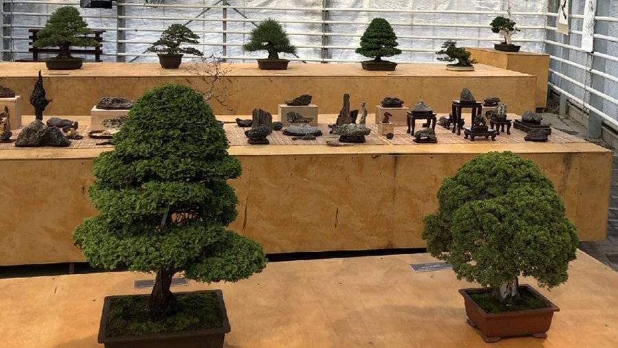 В саду отметили, что в экспозицию входят хвойные, листопадные, вечнозеленые и красивоцветущие растения бонсай из самой большой в России частной коллекции Валерия Пител. Возраст некоторых из представленных деревьев составляет до 100 лет.