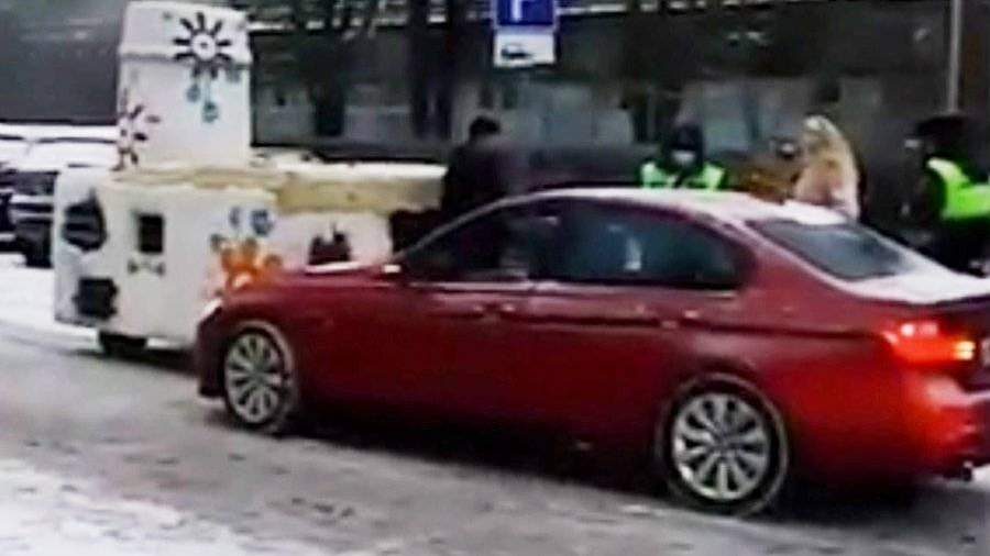 В Москве иномарка BMW столкнулась с расписной печью, сообщает РЕН ТВ 19 декабря.