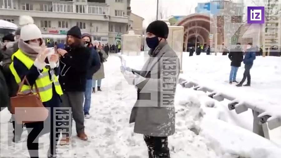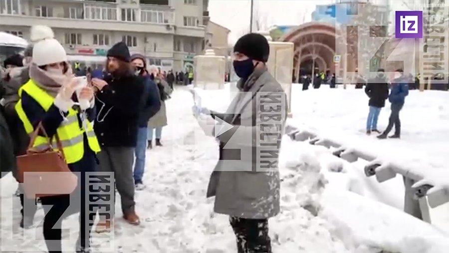Мужчина отобрал плакат и повалил на землю участника одиночного пикета против блогера Алексея Навального. Инцидент произошел в районе станции метро «Красные Ворота» в Москве, где в воскресенье, 31 января, проходит несогласованная акция сторонников блогера.