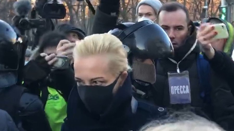 Жена находящегося в СИЗО «Матросская тишина» блогера Алексея Навального Юлия приехала к Мосгорсуду, где будет решаться вопрос о замене условного срока ее супругу на реальный. Об этом во вторник, 2 февраля, сообщает телеканал РЕН ТВ.