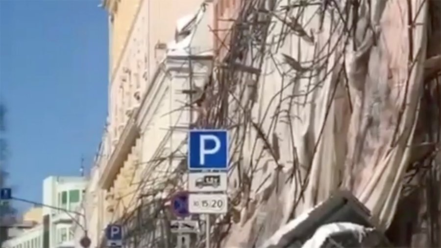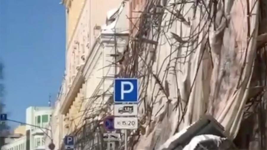 В Telegram-канале столичного департамента транспорта рассказали, что в районе обрушения строительных лесов образовалась пробка, автомобильное движение затруднено.