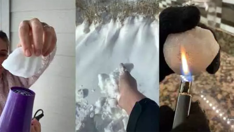 В частности, авторы видео пытаются растопить снег с помощью горящей спички, зажигалки или фена. Многие заявляют, что снег не тает, а иногда даже почти горит, из-за чего пользователи пишут о «поддельном снеге».