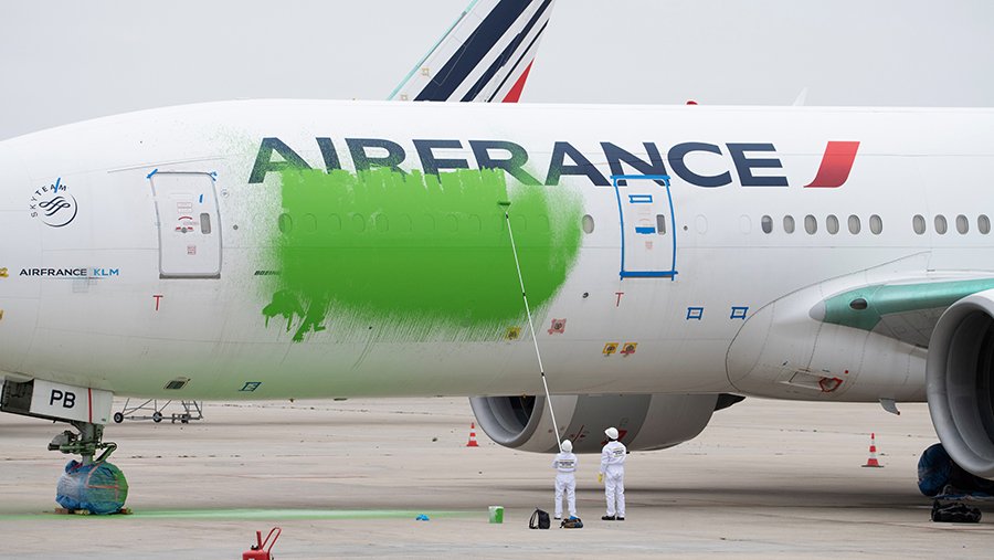 Активисты Greenpeace в Париже перекрасили часть самолета в зеленый цвет
