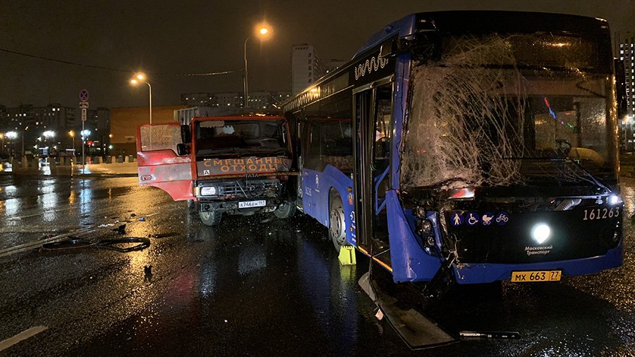 Два человека пострадали в ДТП с автобусом и мусоровозом на юге Москвы