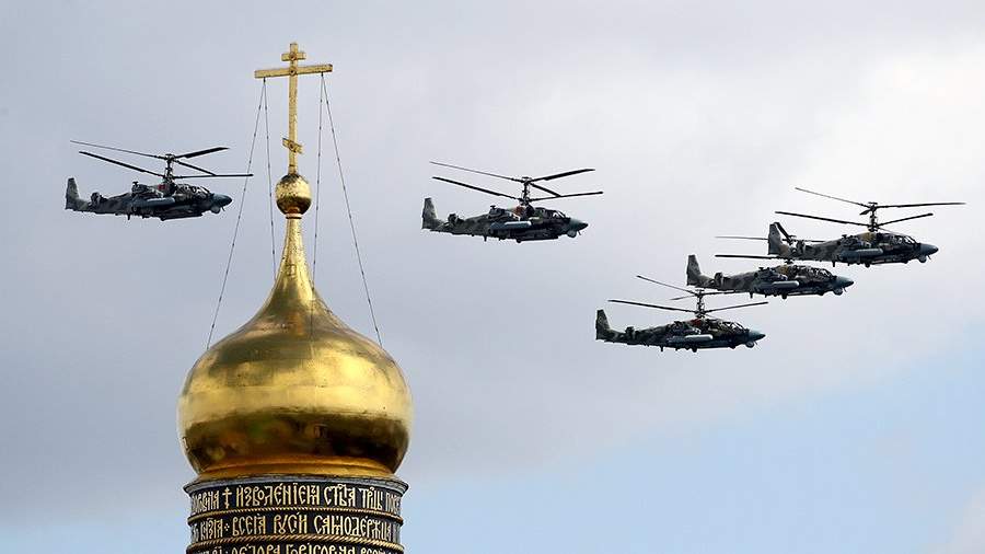 Впервые в нынешнем году воздушную часть парада откроют три тяжелых транспортных вертолета Ми-26, за ними пролетят экипажи транспортно-боевых вертолетов Ми-8, ударных Ми-35, Ка-52 и пилотажная группа «Беркуты» на ударных вертолетах Ми-28Н.